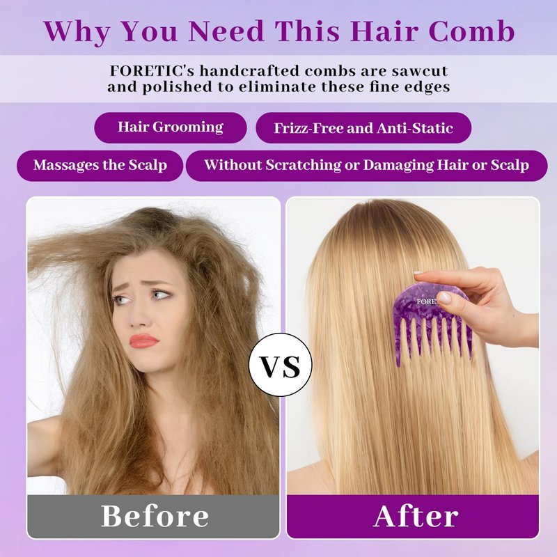 - 【Compact Frizz-Control】Experience frizz-free hair with our Small Wide Tooth Comb. Its anti-static design ensures a smooth glide through hair, massaging your scalp without scratching. Durable and perfect for daily hair care, this comb leaves your hair looking sleek every day.