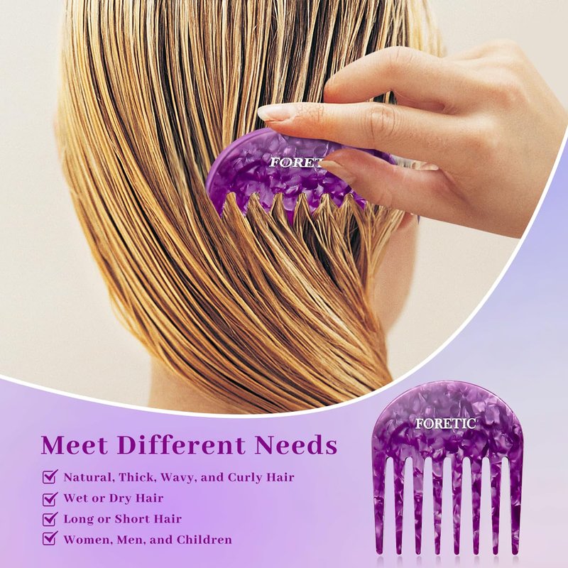 Foretic 2 Pcs Handmade Bright Violet Wide Tooth Comb for Curly Hair - Small, Professional Hair Detangling Comb for Wet and Dry Hair, Suitable for Long and Short Hair - 3.14 Inches