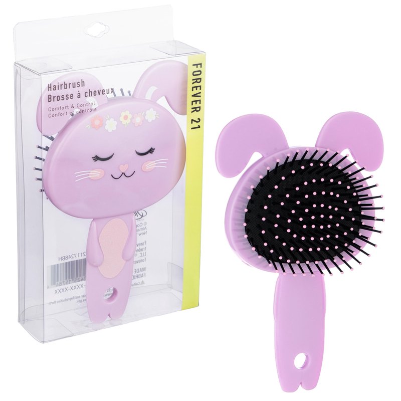 Forever 21 Hairbrush - 1pc Cute Animal Character Hairbrush, Comfort & Control Cushion Hair Brush w/Gentle Bristles, Cushion Base, and Animal Ears (BUNNY)