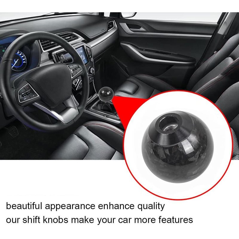 - Design: The Spherical design will make you feel very satisfied with every touch. Carbon Fiber Gear Shift Knob is easy to hold and shift. As the Angle of light changes, you can appreciate the subtly woven carbon fiber inside. You'll need it to decorate your driver's seat.