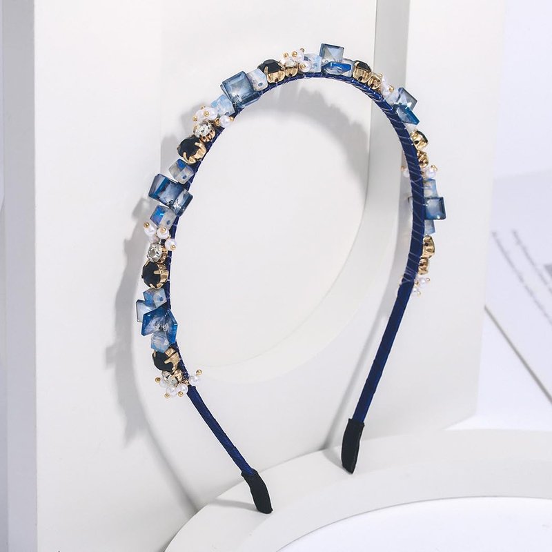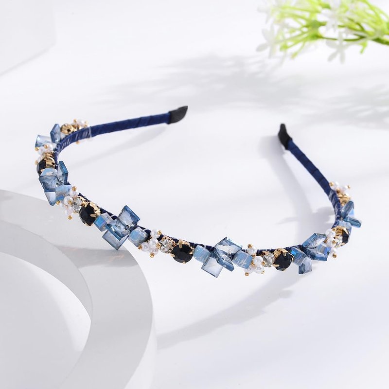 - Blue crystals headband is made of elastic headband, rhinestones, crystal beads and pearls.