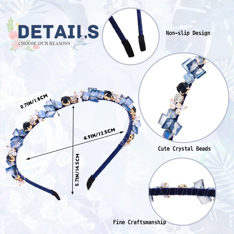 - Rhinestone beaded hairband is blue in color, approx. size: 4.9in*5.7in/12.5cm*14.5cm, width: 0.7in/1.8cm.