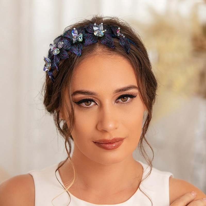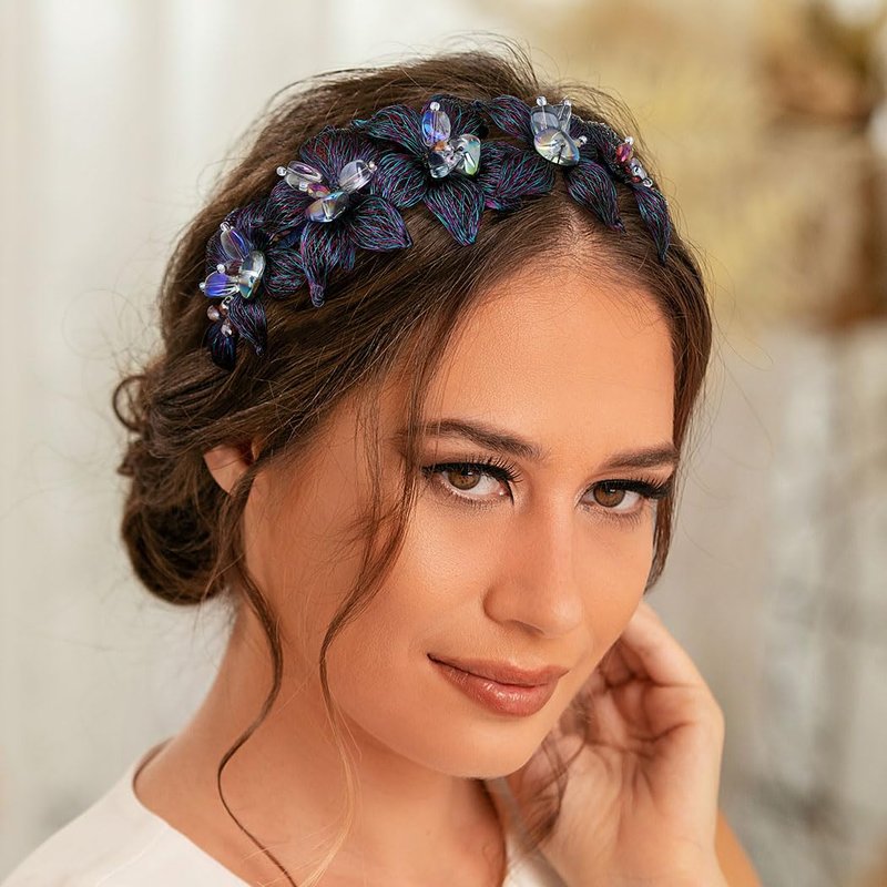 - Copper wire floral hair accessory is fashionable, tastefully adorned with stunning flowers made by blue and purple copper wire and sparkly crystal beads in stone chip shape, and can be able to match any outfit you want to put on, fitting for any occasions you like, such as prom, party, wedding, anniversary, festival, photo-shoot or daily wear.