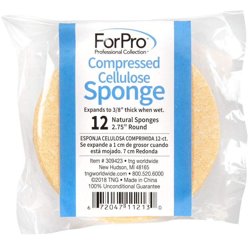 - Compressed Cellulose Sponge: Sponge is 2.75” in diameter and expands to 3/8” thick when wet. Comes in a 12-count pack