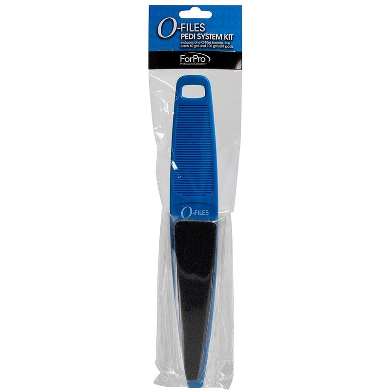 ForPro Professional Collection O-Files Pedi System Kit, Double-Sided Pedicure File for Heels & Feet, Includes Ten 60/100 Grit Refill Strips, 10.5” L,Blue
