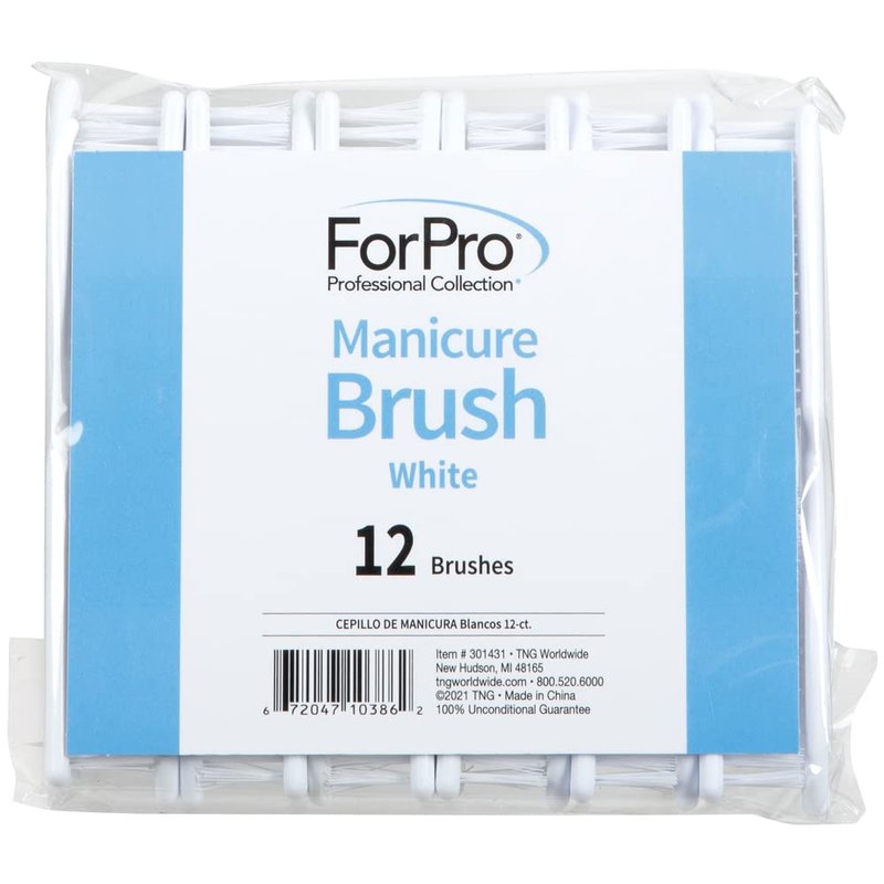 ForPro Professional Collection Premium Nail Brush, Professional Nail Scrub Brush for Cleaning Toes and Fingernails, 5.5” L, White, 12-Count