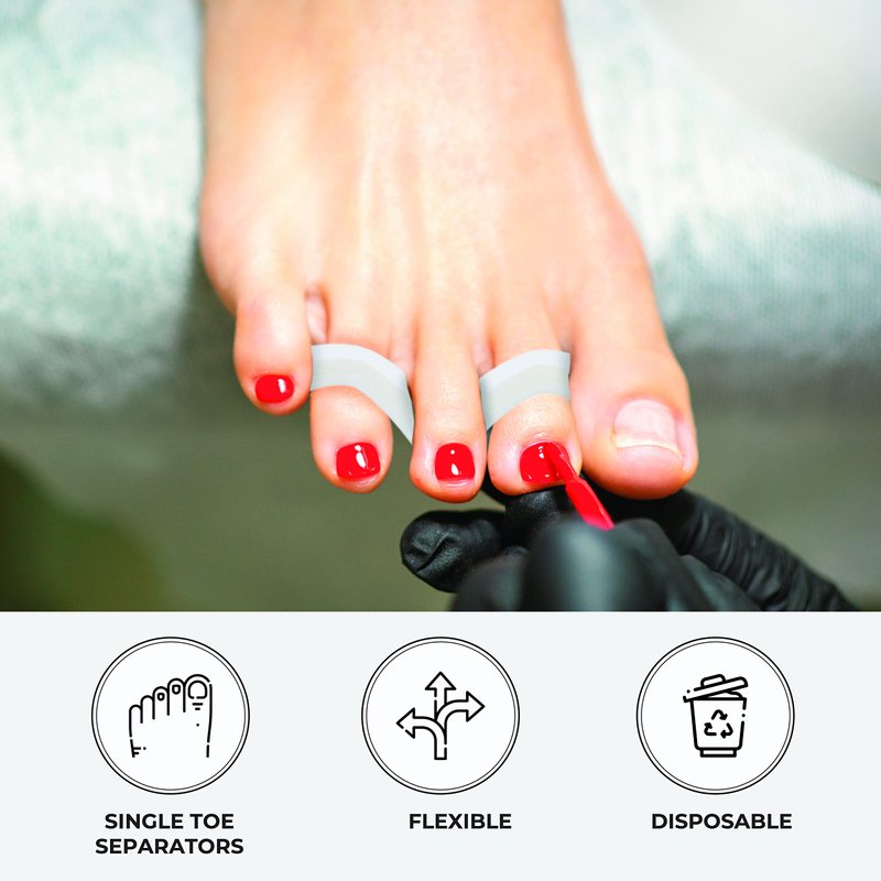 • Disposable Toe Separator Strips: The toe separators for nail polish application are flexible, convenient, and sanitary single-use.