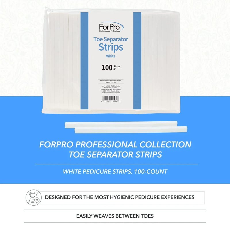 ForPro Toe Separator Strips, Individual Pedicure Toe Separators, 6” L, White, 100-Count
