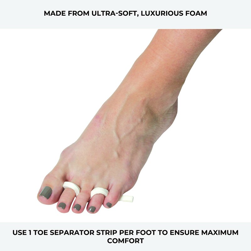 • Comfortable to Use: You can use 1 toe separator strip per foot to ensure maximum comfort. It easily weaves between toes to keep skin clear of germs, nail polish, and other debris.