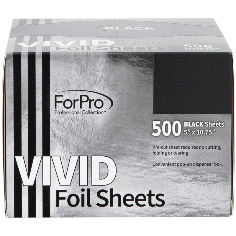 ForPro Vivid Black Embossed Foil Sheets, Aluminum Foil, Pop-Up Foil Dispenser, Hair Foils for Color Application and Highlighting Services, Food Safe, 5” W x 10.75” L, 500-Count