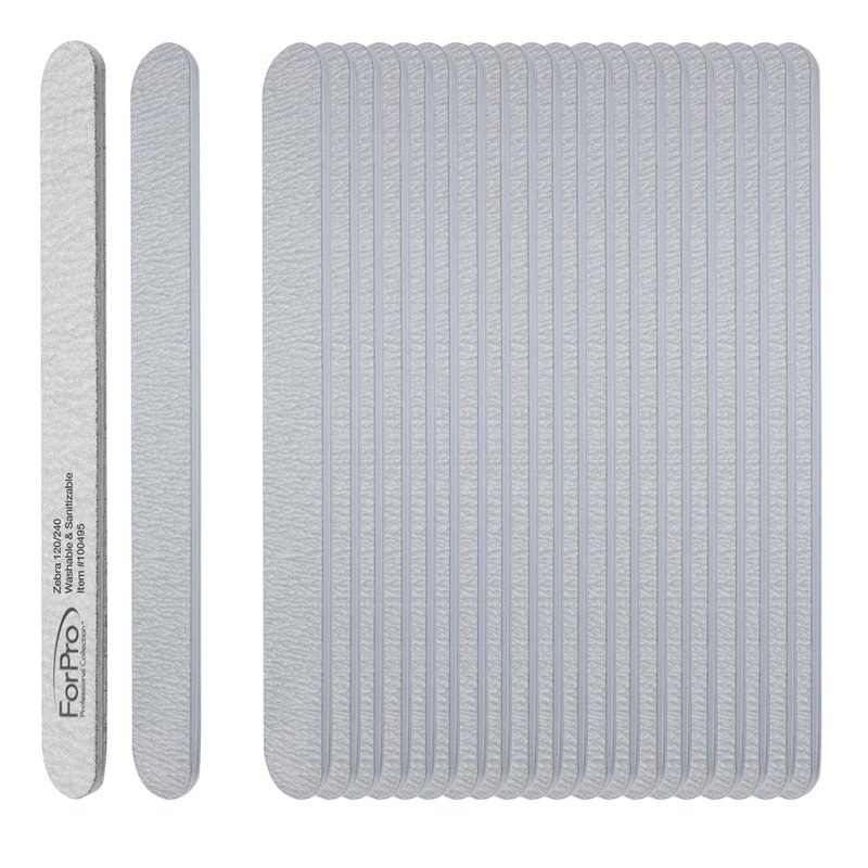 ForPro Zebra Foam Board, 120/240 Grit, Double-Sided Manicure Nail File, 7” L x .75” W 50-Count