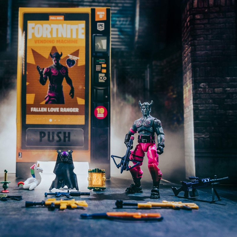FORTNITE Vending Machine - Features 4 Inch Fallen Love Ranger Collectible Action Figure, Includes 9 Weapons, 4 Back Bling, and 4 Building Material Pieces