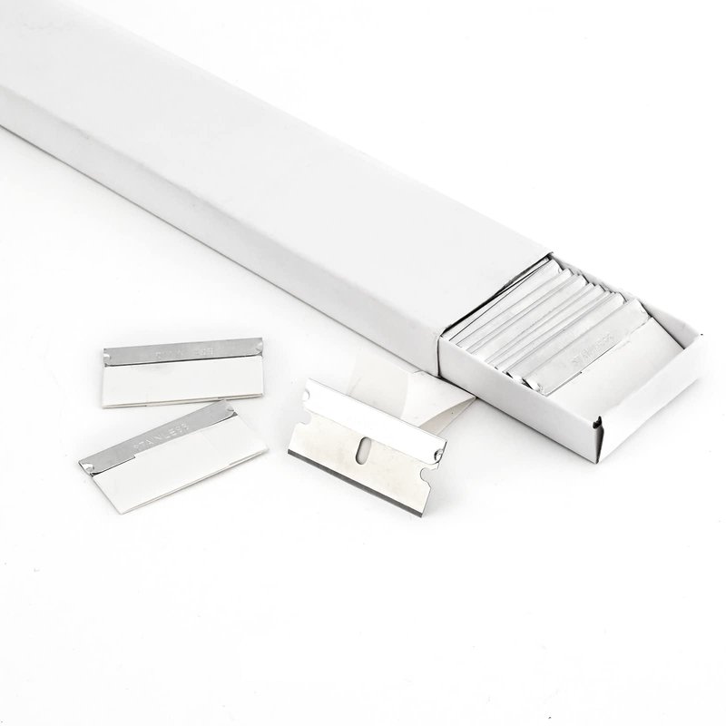 - Single Edge Razor Blade: The pack comes with 100 individually wrapped razor blades. They fit in all the different blade holders for this type. Single edge blades for razor blade scraper are great for sticker removal and other scraping or cutting needs.