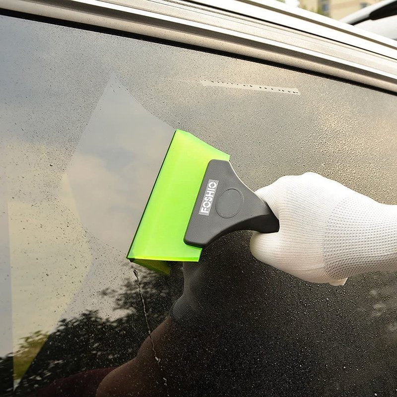 FOSHIO Small Squeegee with 5 Inch Green Rubber Blade Mini Wiper Window Tinting Tools for Mirror Glass Window Cleaner with Non-Slip Handle