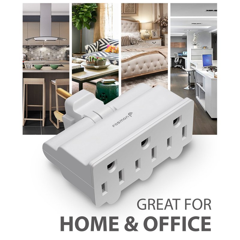 Fosmon's 3 outlet power adapter triples the number of available outlets compared to a standard wall outlet.