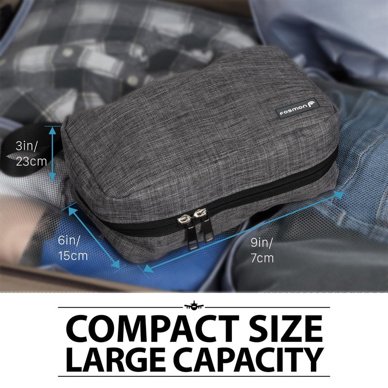 STAY ORGANIZED WHILE TRAVELLING OR AT HOME Perfect for keeping everything together while traveling or for keeping your bathroom decluttered at home. LARGE CAPACITY, SMALL FOOTPRINT 2 Large zippered pouches, a small zippered mesh pouch, and 3 medium-sized pockets meaning you don’t have to leave anything behind. SPLASH RESISTANT OUTSIDE, WATERPROOF INSIDE No more packing your shampoo in plastic bags to protect your clothes, this bag will keep any accidental spills inside. PREMIUM LOOK, DURABLE MATERIALS High-quality splash resistant cloth on the outside and smooth zipper action make this product feel as premium as it is. Limited Lifetime Warranty We have served millions of customers for more than 10 years and every product comes with a limited lifetime warranty. Got a question? Reach out to our experienced and dedicated USA based customer support 24 hours a day, 7 days a week. Please refer to Fosmon’s website for more information.