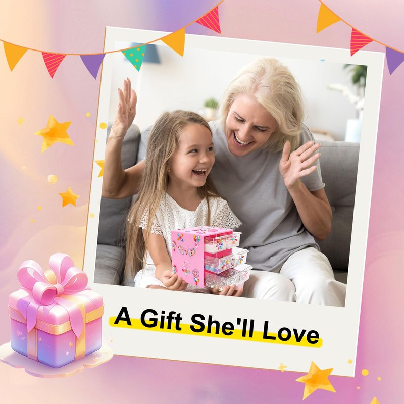 Your girl is a beautiful and unique princess in this world. Give her this exquisite girls jewelry box,make her own jewelry and enjoy the fun of bracelet making kit!