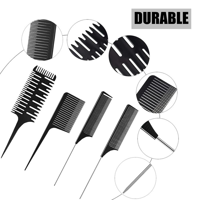 - Humanized design: 4 different styles make it more convenient for you to use.3-way highlighting comb has 3 sides,The end of the teasing comb is round and does not hurt the scalp, very comfortable to use.