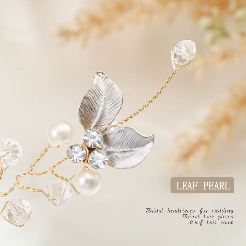 Foyte Crystal Bride Wedding Hair Comb Leaf Bridal Headpieces Rhinestone Flower Hair Vines Pearl Bridesmaid Side Combs Hair Accessories for Women (leaf)