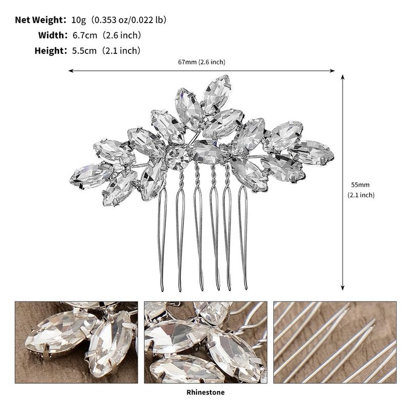 - Wedding bride hair comb is made of sparkly rhinestone and alloy comb in leaf design.Crystal hairpieces are durable, comfortable, and lightweight