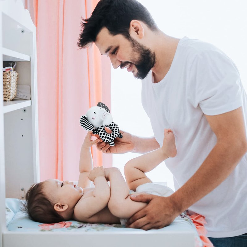 - 👨🍼Perfect Size: Our black and white baby toys are a perfect size and lightweight, easy to carry around. Let your baby be happy at all times. Which for your 0-6 months baby to hold and can easily exercise their grasping ability