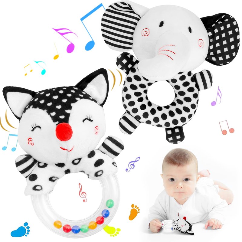 FPVERA Baby Rattles 0-6 Months: Soft Rattles for Babies 0-6 Months Newborn Sensory Toys, High Contrast Black and White Baby Toys 0-3 Months Plush Rattle Toy for Infant Boys Girls Shower Gift, 2PCS