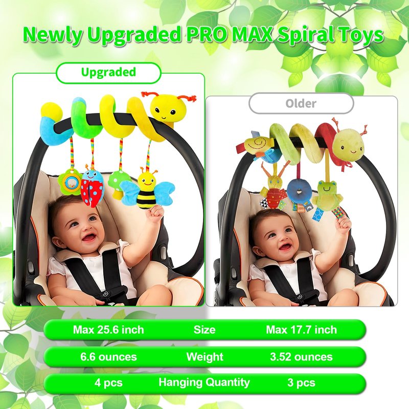 FPVERA Car Seat Toys for Babies 0-6 Months Upgraded Version Spiral Car Seat & Stroller Activity Toy, Soft Plush Hanging Toys with Rattles, Best Gift for Ages 0 and Up