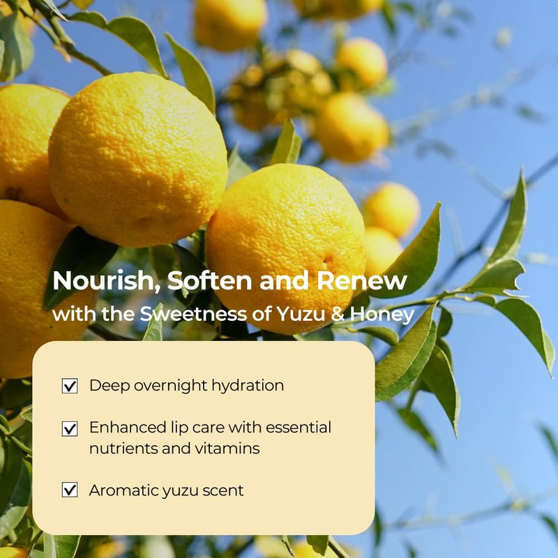 - GENTLE EXFOLIATION: With a low-concentration blend of AHA and BHA, Yuzu Honey lip sleeping mask melts away dead skin cells and flakes without harsh scrubbing or physical exfoliation to strengthen lips' skin barrier.