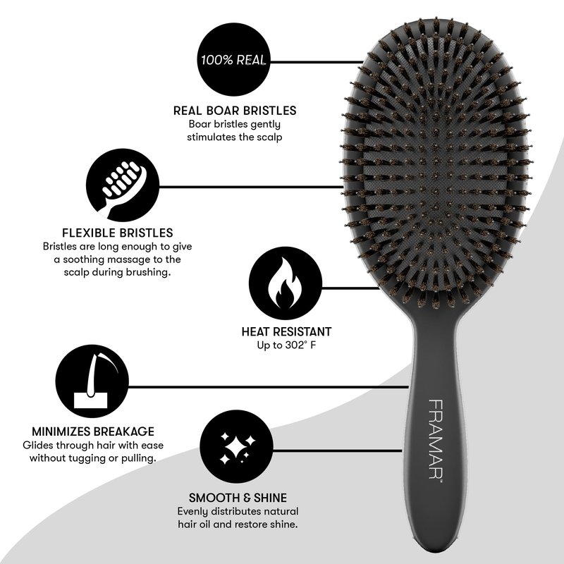 FRAMAR Soft Boar Bristle Hair Brush - Boars Hair Brush For Women, Boar Bristle Brush For Fine Hair, Boar Brush For Fine Hair, Boar Hair Brush Women, Natural Bristle Hair Brush Boar Bristles – Black