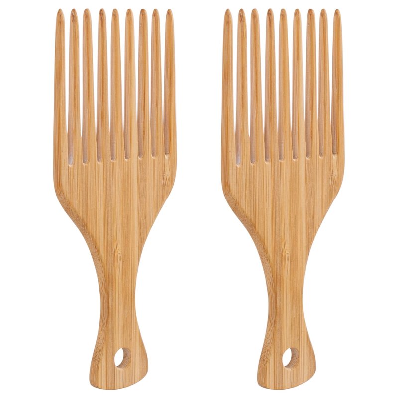 Framendino, 2 Pack Bamboo Combs Afro Hair Picks Beard Pick Men Wide Tooth Comb Curly Wavy Natural Thick Long Hair Hair Picks for Women Hair Styling