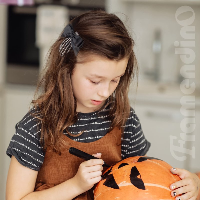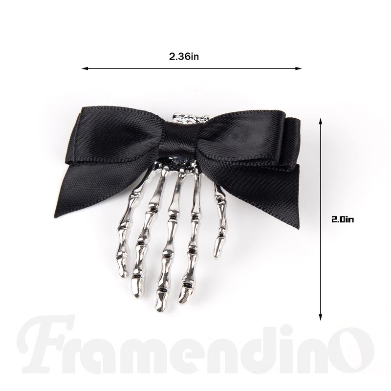 Framendino, 2 Pack Halloween Skeleton Claws Hair Clips Gothic Skull Hands Costume Headpiece Barrettes Bone Claw Hairpins with Bowknot for Horror Party Halloween Hair Accessories