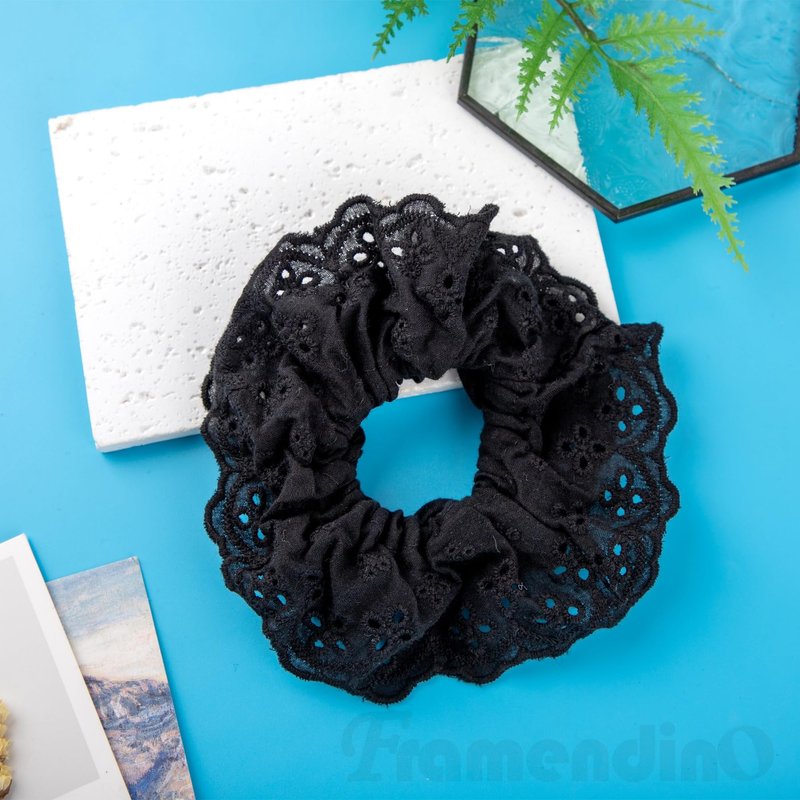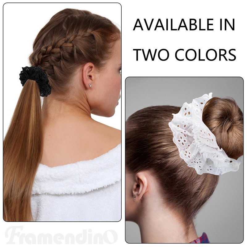 Framendino, 2 Pack White Lace Fabric Ponytail Holder Hair Ties Oversized Mesh Hair Scrunchies for Women (Black, White)