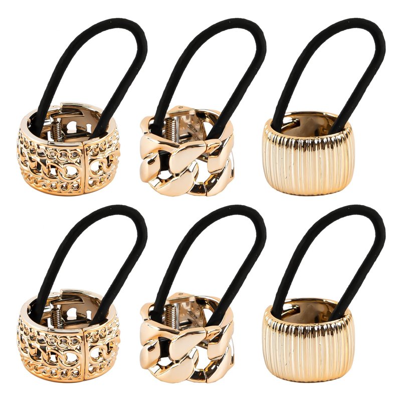 - (Feature) Metal Ponytail Cuff with Their Shiny Materials Design, These Hair Ponytail Holders Add a Touch of Glamour to Your Look