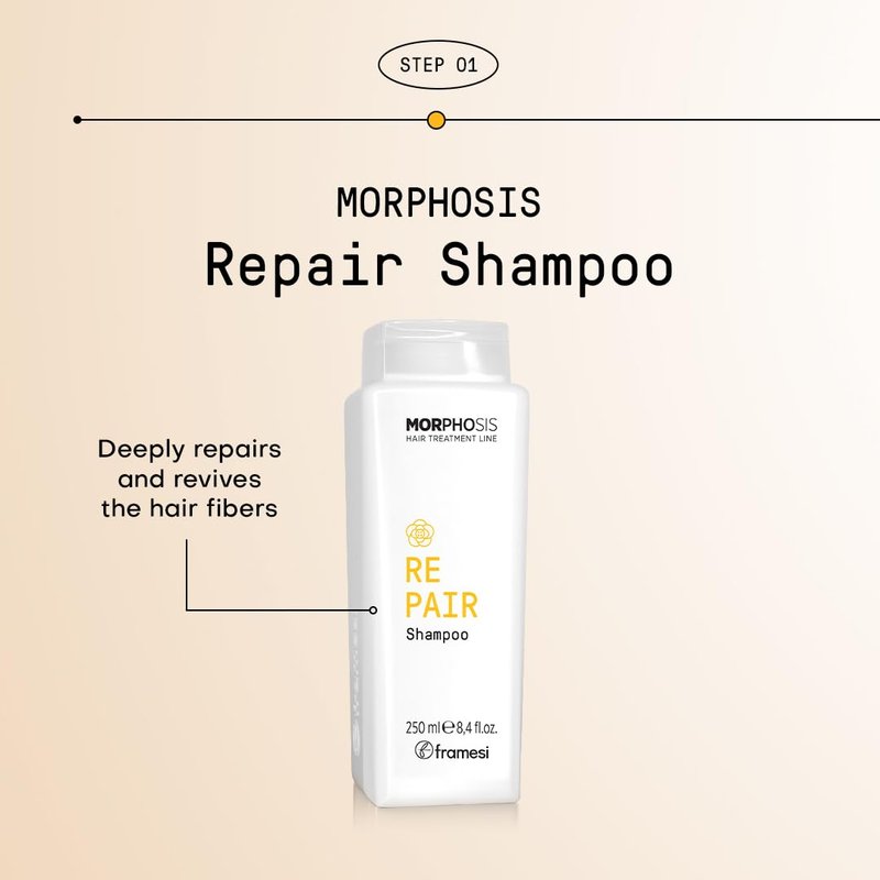FRAMESI Morphosis Repair Shampoo 8.4 fl oz, Moisturizes and Strengthens Hair, Natural Ingredients, Color Safe