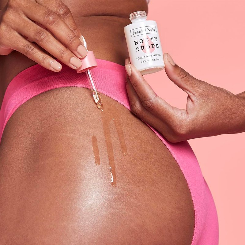 - WHY YOU NEED IT: All of the ingredients in the frank body Booty Drops Firming Body Oil have been carefully chosen. Caffeine firms skin and helps your booty look more toned. Guarana is packed with antioxidants and helps deliver nutrients to your favorite ass-et. Carrot root extract wakes up your skin and hydrates you where you need it. Grapeseed & jojoba oils make your skin feel more supple and work magic on your lumps, bumps, and marks.