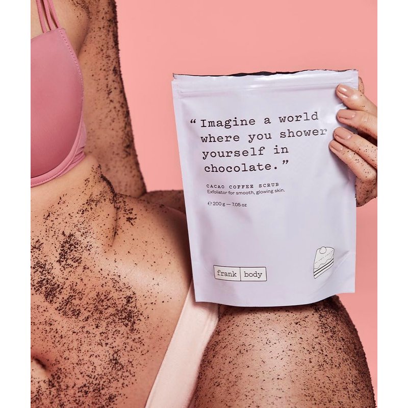 Frank Body Cacao Coffee Scrub | Natural, Vegan, Cruelty Free Exfoliating Body Scrub Smooths, Hydrates, and Nourishes Skin with Cacao Extract, Macadamia Oil, and Vitamins A, E, and D | 7.05 oz / 200 g