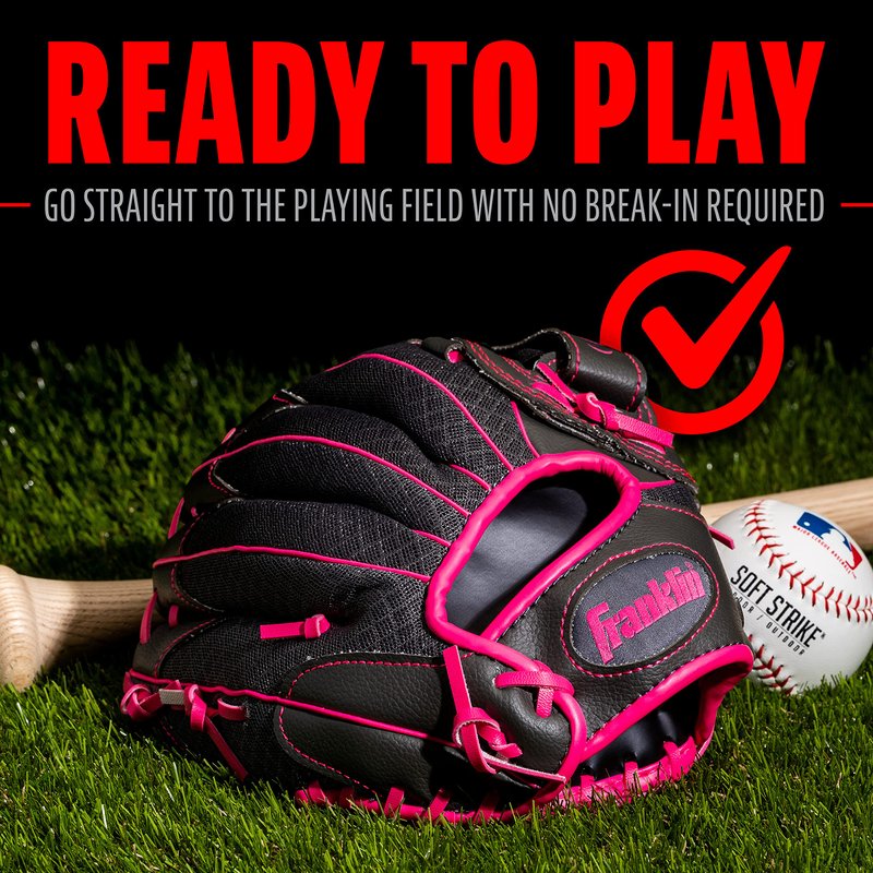 Franklin Sports Kids Baseball Glove - Youth Baseball, Softball + Tball Glove for Boys + Girls - Shok Sorb Glove - Right Hand Throw - Pink - 10.5"