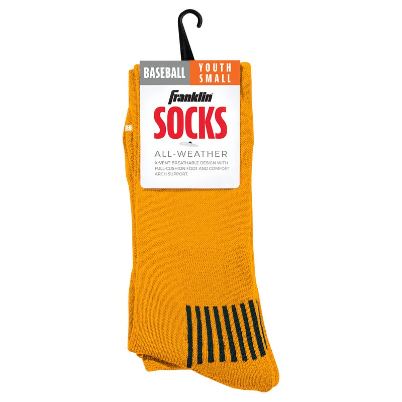 Franklin Sports Youth-Baseball + Softball Socks - Yellow-Baseball + Softball Knee Socks for Kids - Boys + Girls Tall Sports Socks - Youth Medium, Gold