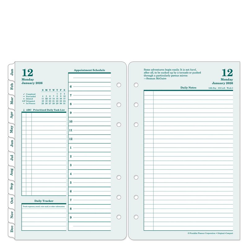 FranklinCovey - Original Planner Refill | Two Pages Per Day - Ring-Bound Planner (Compact, Jan 2026 - Dec 2026)