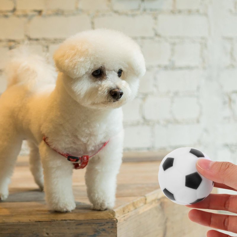-This soccer shaped chew puppy toy is designed with a built-in squeaker that will squeak when pressed or when the dog chews dog football toys.