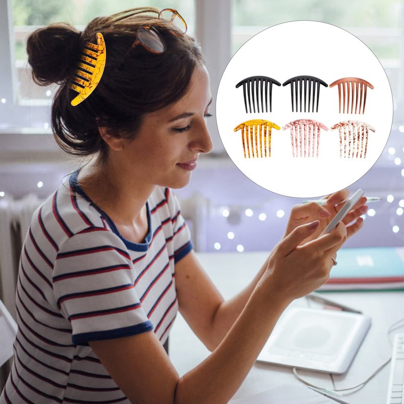 FRCOLOR 6pcs Hair Side Combs Resin Hair Comb French Twist Comb Plastic Twist Comb Hair Clip Combs Accessories for Girls Women (Random Color)