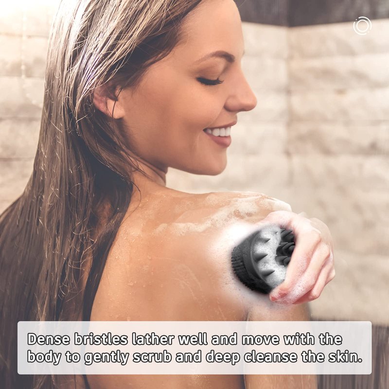 FREATECH 2-in-1 Silicone Body Scrubber - Bath Shower Body Brush and Shampoo Brush Scalp Massager Exfoliator, Deep Cleanse Skin & Hair, Lathers well, Easy to Clean and Long-lasting, Black