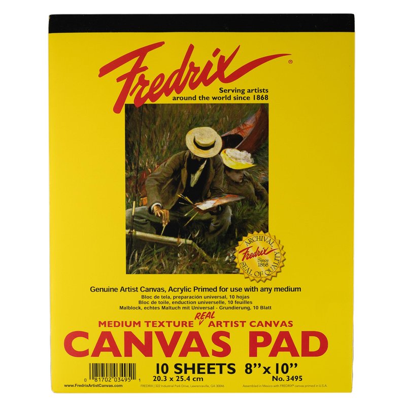 Fredrix 3495 Canvas Pad, 8" x 10" Canvas, Primed and Ready to Paint, Sturd, Can be Mounted When Dry, 10 Sheets per Pad, White
