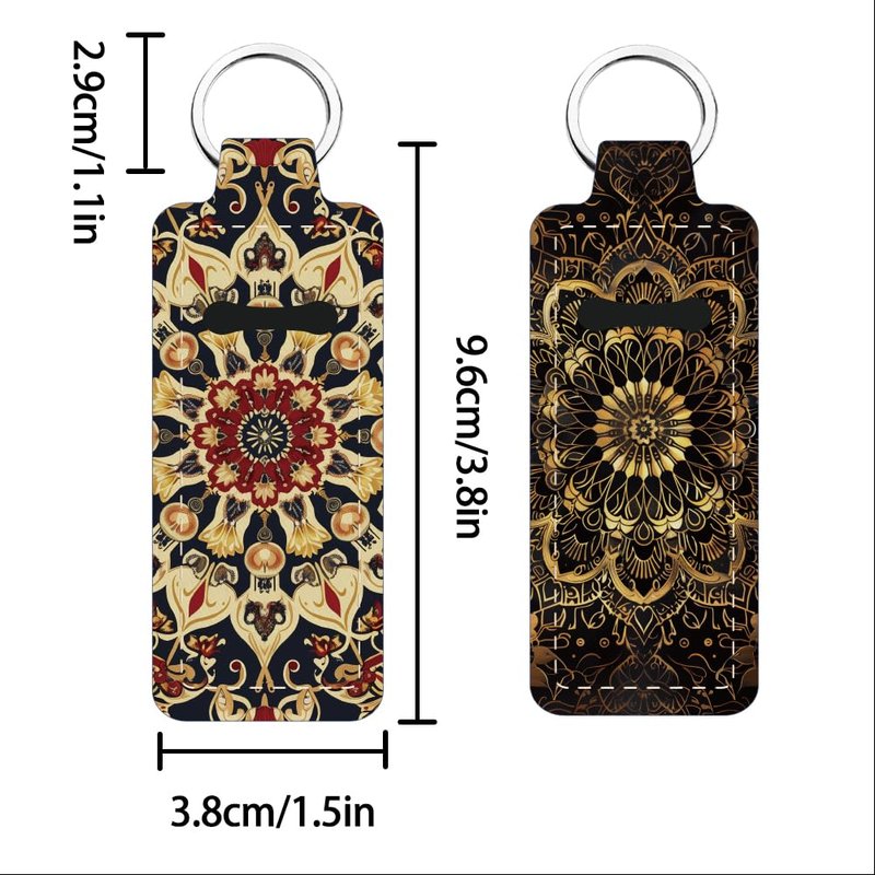 FREEBLOSS 2 Pack Lip Balm Holder Keychain Vintage Mandala Pattern Chapstick Holders Lip Gloss Holder Keychain Lipstick Sleeve Keychain Chapstick Sleeve Holder for Women Friends Gift