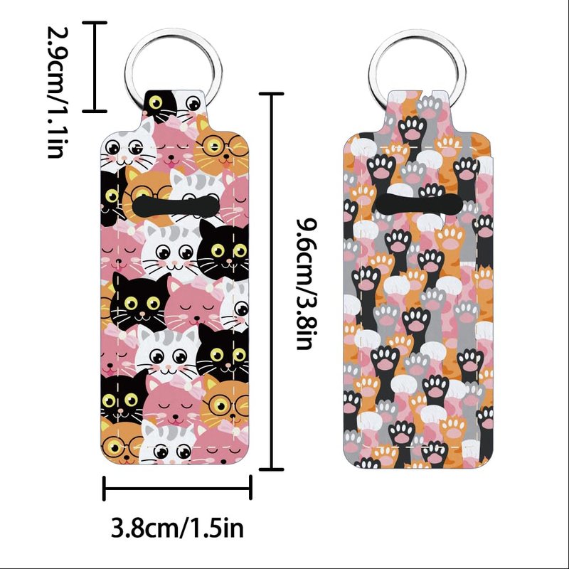 FREEBLOSS 2Pcs Cats Chapstick Holder Keychain 1.5x3.8'' Lip Balm Holder Keychain with Cartoon Cat Pattern Lightweight Lipstick Sleeve Pouch for Women Gift