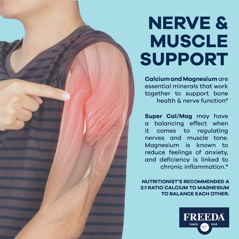 - BONE & JOINT SUPPORT - Freeda's daily calcium and magnesium supplement may support the regeneration of bone & joint tissue at a healthy rate*. Magnesium plays a key role in converting Vitamin D to its active form which aids calcium absorption.*