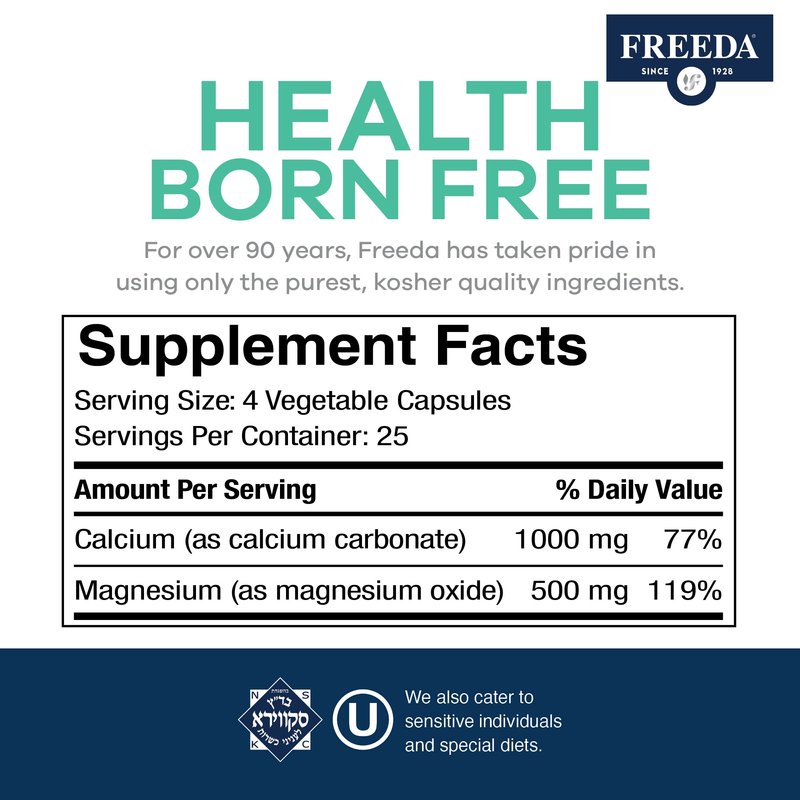 - PROUDLY MADE IN USA - Stay healthy and help prevent calcium or magnesium deficiency with Freeda*. Proudly Made in the USA in a GMP certified facility under strict quality assurance guidelines. Freeda: Trusted Since 1928.