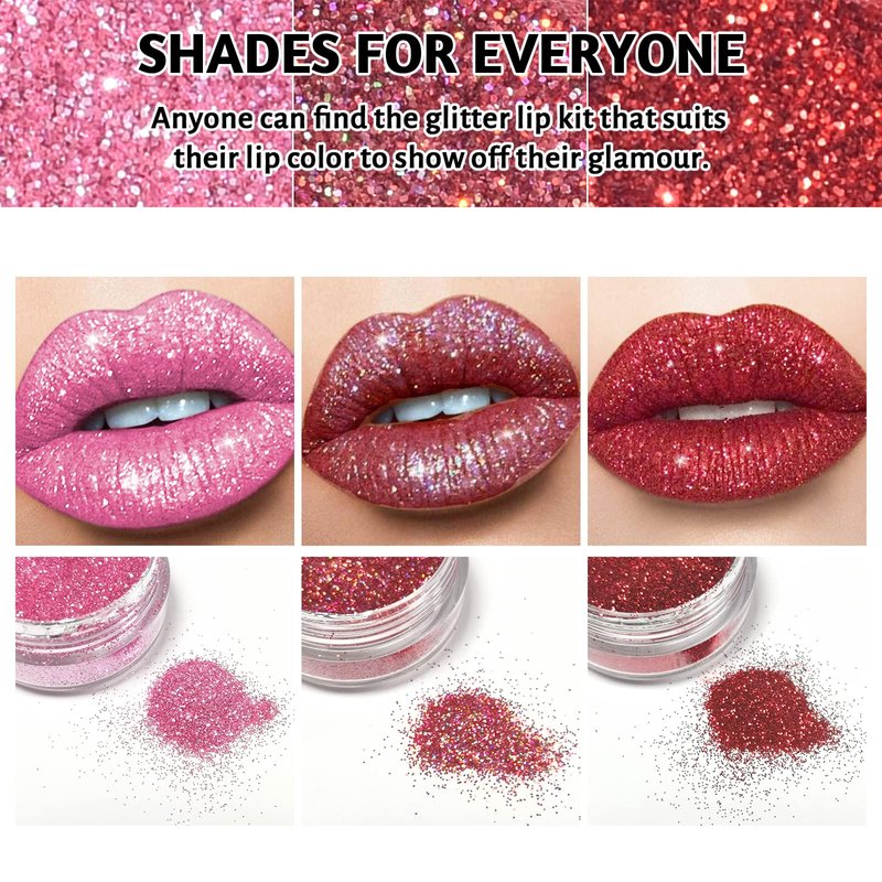 - 【Ideal gift for Your Love】Our glitter lip kit have 3 styles for you to choose. Your friends or your family member will fall in love with the glitter , diamond , metallic sparkling 3D lip glitter effect.