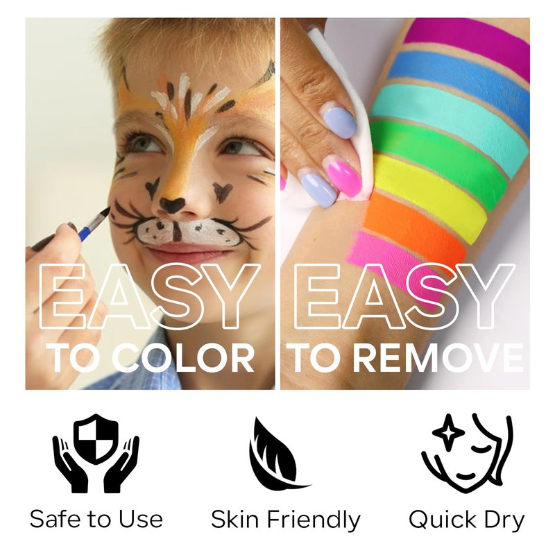 - 【Smudge-proof & Easy To Remove】The pigment is not easy to fade after drying and ensures that your face body painting will not be stained by sweat. And you only need to use soapy water or makeup remover to clean it.