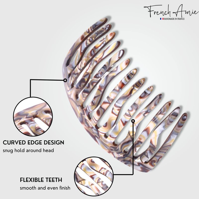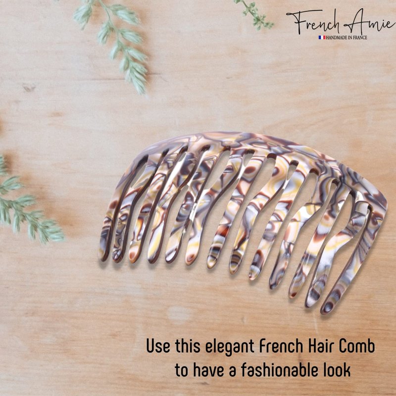 - This hair accessory is handmade in France with celluloid acetate. Our French Amie hair ornaments are handmade in Europe, every hair accessory is hand polished to perfection with unique design and patterns. At French Amie, the integrity and finest quality of products are guaranteed. Reach out to us for any kind of service or product-related issue.